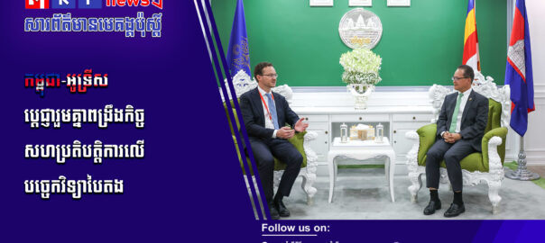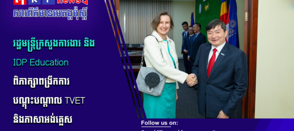 ឯកឧត្តម ហេង សួរ រដ្ឋមន្ត្រីក្រសួងការងារ និងបណ្ដុះបណ្ដាលវិជ្ជាជីវៈ បានទទួលជួបសម្ដែងការគួរសម និងពិភាក្សាការងារជាមួយលោកស្រី ប្រីជែត ខូលៀរ (Bridget Collier) ភារធារីស្ថានទូតអូស្ត្រាលីប្រចាំកម្ពុជា និងលោកស្រី ធេនណាល អូហ្សេនណេស៊ី (Tennealle O’Shannessy) នាយិការប្រតិបត្តិនៃ IDP Education និងជាអ្នកធុរកិច្ចឆ្នើមអូស្ត្រាលីប្រចាំនៅកម្ពុជា ដើម្បីផ្លាស់ប្តូរមតិយោបល់ពីការពង្រឹងកិច្ចសហប្រតិបត្តិការរវាងកម្ពុជា និងអូស្ត្រាលីក្នុងការអភិវឌ្ឍជំនាញវិជ្ជាជីវៈ (TVET) ការបណ្តុះបណ្តាលភាសាអង់គ្លេស និងការជំរុញទំនាក់ទំនងធុរកិច្ចរវាងប្រទេសទាំងពីរ។ សូមទស្សនាព័ត៌មានពិស្ដារ៖