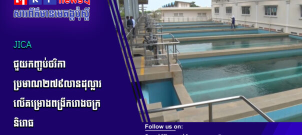 កម្ពុជាស្នើឱ្យរដ្ឋាភិបាលជប៉ុនបន្តជួយស្ថាបនាស្ថានីយប្រព្រឹត្តកម្មទឹកកខ្វក់(ចម្រោះ)នៅក្នុងរាជធានីភ្នំពេញបន្ថែមទៀត ដើម្បីជួយលើកកម្ពស់គុណភាពទឹកដែលប្រើប្រាស់រួច មុននឹងបង្ហូរចូលទៅក្នុងប្រភពទឹកផ្សេងៗ ពិសេសដងទន្លេ ខណៈក្នុងរាជធានីភ្នំពេញនាពេលនេះមានស្ថានីយប្រព្រឹត្តកម្មទឹកកខ្វក់ តែ ១ប៉ុណ្ណោះដែលជាជំនួយរបស់រដ្ឋាភិបាលជប៉ុន។ សូមទស្សនាព័ត៌មានពិស្ដារ៖