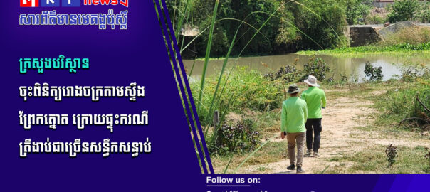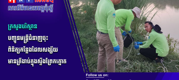 បន្ទាប់ពីមានសេចក្ដីរាយការណ៍ពីប្រជាពលរដ្ឋ នៅរសៀលថ្ងៃទី៣០ ខែមីនា ឆ្នាំ២០២៦ ក្រសួងបរិស្ថានបានបញ្ជូនមន្ត្រីជំនាញចុះពិនិត្យ ទៅដល់កន្លែងកើតហេតុ ដែលសង្ស័យមានត្រីងាប់ជាច្រើនក្បាលក្នុងស្ទឹងព្រែកត្នោត ក្នុងភូមិសាស្រ្តខណ្ឌដង្កោ រាជធានីភ្នំពេញ។ សូមទស្សនាព័ត៌មានពិស្ដារ៖