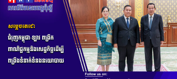 សម្ដេចតេជោ ហ៊ុន សែន ជំរុញឲ្យកម្ពុជា-ឡាវ ពង្រីកនូវកិច្ចសហប្រត្ដិបត្ដិការជាមួយគ្នាក្នុងក្របខណ្ឌនៃទំនាក់ទំនងពាណិជ្ជកម្ម សេដ្ឋកិច្ច ដើម្បីគាំទ្រដល់ទំនាក់ទំនងនយោបាយ និងការទូត ខណ:ប្រទេសទាំងពីរគឺជាមិត្ដដែលមានប្រវត្ដិសាស្ដ្រយូរអង្វែងជាមួយគ្នា។ សូមទស្សនាព័ត៌មានពិស្ដារ៖