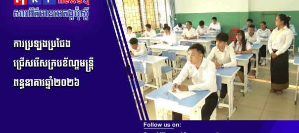 គណៈកម្មការប្រឡងប្រជែងជ្រើសរើសក្របខ័ណ្ឌមន្ត្រីពន្ធនាគារសម្រាប់ឆ្នាំ២០២៦ បានដំណើរការប្រឡងប្រជែងនាព្រឹកថ្ងៃអាទិត្យ ទី២៩ មីនាឆ្នាំ២០២៦នេះ នៅ «មណ្ឌលប្រឡងវិទ្យាល័យជា ស៊ីម សន្ធរម៉ុក »មានទីតាំងស្ថិត នៅក្នុង សង្កាត់ទឹកល្អក់ទី១ ខណ្ឌទួលគោក រាជធានីភ្នំពេញជាមួយនិងបេក្ខជនប្រឡងចំនួន ២៣៩រូប ជានារីចំនួន ៩៩ រូប ស្មើនឹង១១ បន្ទប់ ដោយត្រូវជ្រើសរើសយកចំនួន៥៣រូប។ សូមទស្សនាព័ត៌មានពិស្ដារ៖