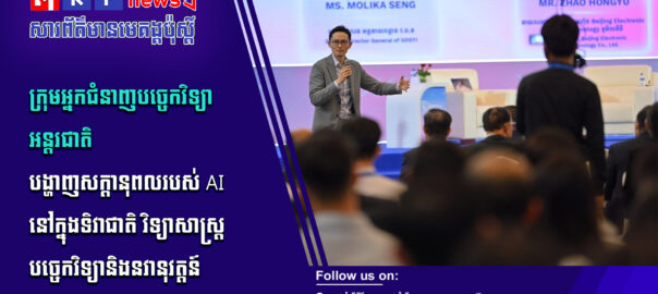 អ្នកជំនាញការអន្តរជាតិ មកពីក្រុមហ៊ុនបច្ចេកវិទ្យាឈានមុខមួយក្នុងប្រទេសចិន បានចែករំលែកយុទ្ធសាស្ត្រ និងបទពិសោធន៍ជាក់ស្តែង អំពីការអនុវត្តបច្ចេកវិទ្យា AI ស្របពេលបច្ចុប្បន្ន បញ្ញាសិប្បនិម្មិត (AI) កំពុងក្លាយជាកម្លាំងចលករជំរុញសេដ្ឋកិច្ចឌីជីថលរបស់កម្ពុជា។ សូមទស្សនាព័ត៌មានពិស្ដារ៖