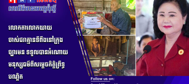 សម្តេចកិត្តិព្រឹទ្ធបណ្ឌិត ប៊ុន រ៉ានី ហ៊ុនសែន ប្រធានកាកបាទក្រហមកម្ពុជា នៅថ្ងៃទី០៧ ខែមេសា ឆ្នាំ២០២៦ បានចាត់ លោកជំទាវ ម៉ែន នារីសោភ័គ អគ្គលេខាធិការរងទី១ កាកបាទក្រហមកម្ពុជា រួមជាមួយសាខាកាកបាទក្រហមកម្ពុជា ខេត្តកំពង់ស្ពឺ ចុះសួរសុខ ទុក្ខ និងនាំយកអំណោយមនុស្សធម៌ ជាគ្រឿងឧបភោគ បរិភោគ និងថវិកាមួយចំនួន ជូនដល់លោកយាយ ខៀវ អែង អាយុ ៨៨ឆ្នាំ ជាចាស់ជរាគ្មានទីពឹង រស់នៅភូមិអង្គសេរី សង្កាត់រកាធំ ក្រុងច្បារមន ខេត្តកំពង់ស្ពឺ និងលោកតា ប៉ែន ប៉ុន អាយុ១០២ឆ្នាំ រស់នៅក្រុងច្បារមន ខេត្តកំពង់ស្ពឺ។ សូមទស្សនាព័ត៌មានពិស្ដារ៖