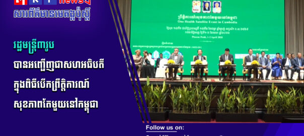 ឯកឧត្តមសាស្រ្តាចារ្យ ឈាង រ៉ា រដ្ឋមន្រ្តីក្រសួងសុខា ភិបាល និងឯកឧត្តមបណ្ឌិត អ៊ាង សុផល្លែត រដ្ឋមន្រ្តីក្រសួងបរិស្ថាន និងឯកឧត្តម ឌិត ទីណា រដ្ឋមន្រ្តីក្រសួងកសិកម្ម រុក្ខប្រមាញ់ និងនេសាទ រួមជាមួយ ឯកឧត្តម Olivier RICHARD, ឯកអគ្គរដ្ឋទូត នៃសាធារណរដ្ឋបារាំងប្រចាំព្រះរាជាណាចក្រកម្ពុជា បានអញ្ជើញជាសហអធិបតីក្នុងពិធីបើកព្រឹត្តិការណ៍សុខភាពតែមួយនៅកម្ពុជា» ១ មេសា ២០២៦ រៀបចំនៅសណ្ឋាគារសូហ្វីតែលភ្នំពេញភូគីត្រា។ សូមទស្សនាព័ត៌មានពិស្ដារ៖