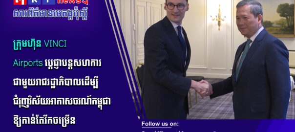 លោក Rémi Maumont de Longevialle នាយកប្រតិបត្តិក្រុមហ៊ុន VINCI Airports បានប្ដេជ្ញាបន្តចូលរួមជាមួយរាជរដ្ឋាភិបាល ដើម្បីជំរុញ និងអភិវឌ្ឍឧស្សាហកម្មអាកាសចរណ៍នៅកម្ពុជា។ ការប្ដេជ្ញានេះធ្វើឡើងនៅក្នុងឱកាស សម្តេចមហាបវរធិបតី ហ៊ុន ម៉ាណែត នាយករដ្ឋមន្ត្រីនៃព្រះរាជាណា ចក្រកម្ពុជា បានអនុញ្ញាតឱ្យលោកចូលជួបសម្តែងការគួរសម និងពិភាក្សាការងារ ក្នុងឱកាសនៃការអញ្ជើញចូលរួមកិច្ចប្រជុំកំពូលស្តីពី «សុខភាពតែមួយ» (One Health Summit) នៅទីក្រុងលីយ៉ុង និងបំពេញទស្សនកិច្ចការងារនៅសាធារណ រដ្ឋបារាំង ចាប់ពីថ្ងៃទី៦ ដល់ថ្ងៃទី៩ ខែមេសា ឆ្នាំ២០២៦។ សូមទស្សនាព័ត៌មានពិស្ដារ៖