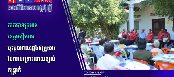 នៅរសៀលថ្ងៃទី២១ ខែមេសា ឆ្នាំ២០២៦ ឯកឧត្ដម គុជ លីណា អនុប្រធានអចិន្ត្រៃយ៍គណៈកម្មាធិការសាខាកាកបាទក្រហមកម្ពុជា ខេត្តសៀមរាប តំណាងដ៏ខ្ពង់ខ្ពស់ ឯកឧត្ដម ប្រាក់ សោភ័ណ ប្រធានគណៈកម្មាធិការសាខាកាកបាទក្រហមកម្ពុជា ខេត្តសៀមរាប និងសហការី បានអញ្ជើញចុះសួរសុខទុក្ខ និងនាំយកអំណោយមនុស្សធម៌ផ្ដល់ជូនដល់គ្រួសាររងគ្រោះដោយខ្យល់កន្ត្រាក់ចំនួន ៤៩គ្រួសារ នៅស្រុកស្រីស្នំ ចំនួន២៧គ្រួសារ និងស្រុកក្រឡាញ់ ចំនួន២២គ្រួសារ បណ្ដាលឱ្យរលំផ្ទះ ១គ្រួសារ, ប៉ះពាល់ធ្ងន់ ៤៦គ្រួសារ, ជនរងគ្រោះដោយរន្ទះបាញ់ស្លាប់ម្នាក់ និងលង់ទឹកម្នាក់។ សូមទស្សនាព័ត៌មានពិស្ដារ៖