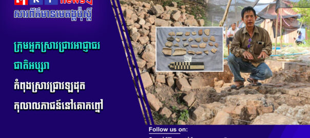 ក្រុមការងារបុរាណវិទ្យារបស់អាជ្ញាធរជាតិអប្សរា ធ្វើកំណាយស្រាវជ្រាវនៅខាងក្រៅកំពែងអតីតព្រះបរមរាជវាំងនៃក្រុងអង្គរធំ អស់រយៈពេល១ខែមកហើយ។ ការធ្វើកំណាយស្រាវជ្រាវនេះ ក្នុងគោលបំណងសិក្សាទីតាំង ដែលមានស្លាកស្នាមជាកសិន្ធុទឹក និងប្រព័ន្ធបង្ហូរទឹកសម័យបុរាណដើម្បីរំដោះទឹកចេញពីក្នុងបរិវេណព្រះបរមរាជវាំង ហូរចូលក្នុងកសិន្ធុ។ សូមទស្សនាព័ត៌មានពិស្ដារ៖