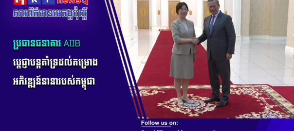 នាព្រឹកថ្ងៃទី១ ខែមេសា ឆ្នាំ២០២៦ នៅវិមានសន្តិភាព សម្ដេចមហាបវរធិបតី ហ៊ុន ម៉ាណែត នាយករដ្ឋមន្ត្រីនៃព្រះរាជាណាចក្រកម្ពុជា បានអនុញ្ញាតឱ្យ លោកជំទាវ Zou Jiayi ប្រធានធនាគារវិនិយោគហេដ្ឋារចនាសម្ព័ន្ធអាស៊ី (AIIB) ចូលជួបសម្តែងការគួរសម និងពិភាក្សាការងារ។ សូមទស្សនាព័ត៌មានពិស្ដារ៖