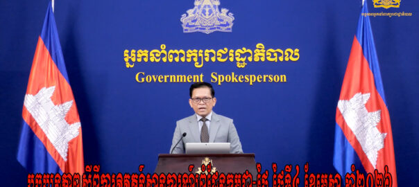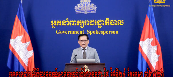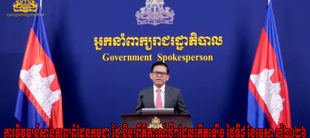 ការវិវឌ្ឍន៍ស្ថានភាពព្រំដែនកម្ពុជា-ថៃ និងព្រឹត្តិការណ៍ថ្មីៗដែលកើតឡើង។ ថ្ងៃព្រហស្បតិ៍ ៧កើត ខែពិសាខ ឆ្នាំមមី អដ្ឋស័ក ព.ស.២៥៦៩ ត្រូវនឹងថ្ងៃទី២៣ ខែមេសា ឆ្នាំ២០២៦ នៅទីស្តីការគណៈរដ្ឋមន្ត្រី។ សូមទស្សនាសេចក្ដីថ្លែងការណ៍៖