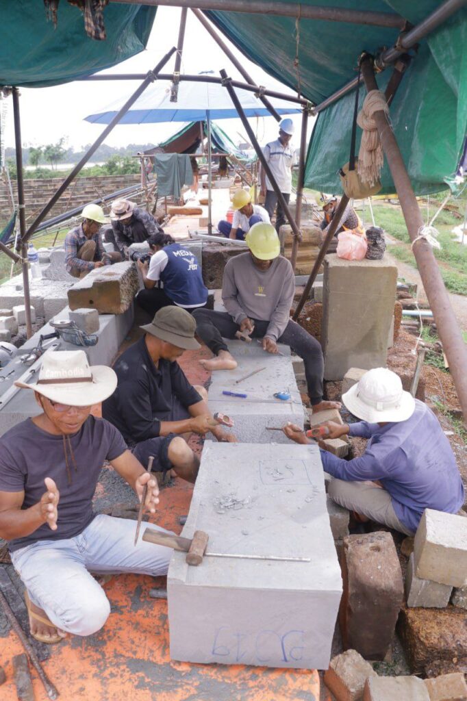 ជាងចម្លាក់នៅប្រាសាទមេបុណ្យខាងលិច ខិតខំឆ្លាក់ក្បាច់តាមទ្រង់ទ្រាយដើម ទុកជាកេរដំណែលរយឆ្នាំបន្តទៀត