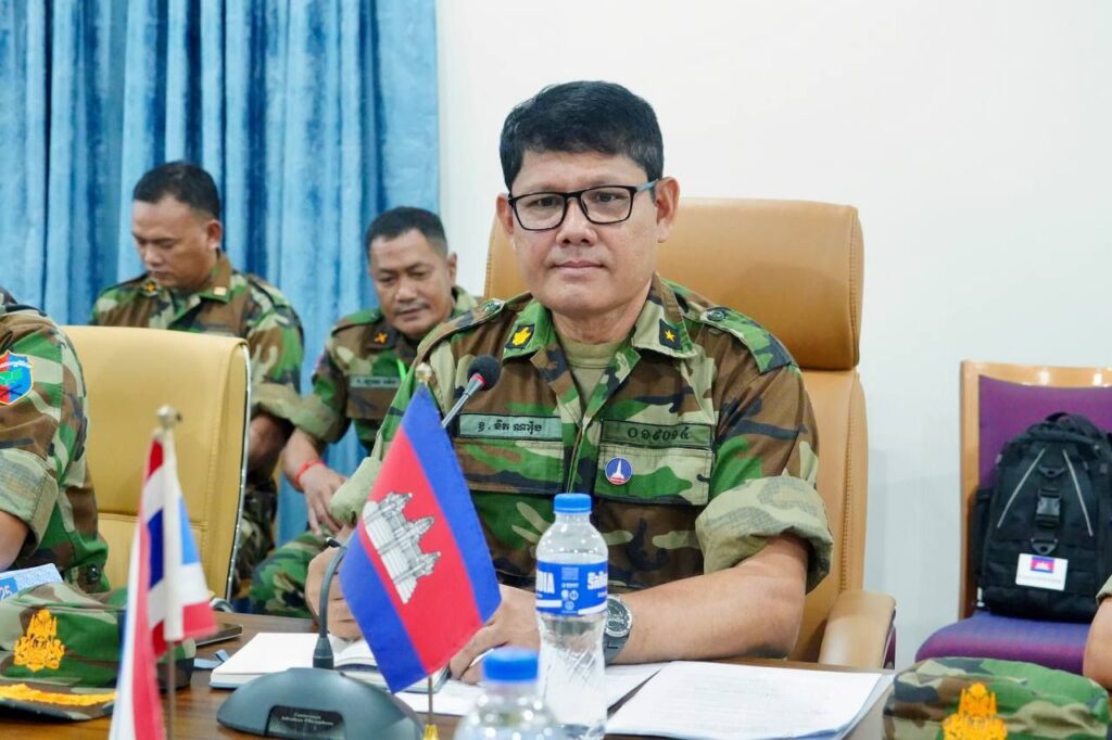 លោកជំទាវ ឧត្តមសេនីយ៍ឯក ម៉ាលី សុជាតា អ្នកនាំពាក្យក្រសួងការពារជាតិ នៃព្រះរាជាណាចក្រកម្ពុជា បានមានប្រសាសន៏ថា តបតាមការអញ្ជើញរបស់ប្រធានក្រុមលេខាធិការយោធភូមិភាគទី៤ កម្ពុជា នៅព្រឹកថ្ងៃទី១០ ខែតុលា ឆ្នាំ២០២៥នេះ ក្រុមលេខានៃគណៈកម្មាធិការព្រំដែនថ្នាក់យោធភូមិភាគ កម្ពុជា-ថៃ (RBC) រវាងយោធភូមិភាគទី៤ ភាគីកម្ពុជា និងកងទ័ពភូមិភាគទី២ ភាគីថៃ បានជួបប្រជុំគ្នា នៅសាលប្រជុំក្រុមទំនាក់ទំនងកម្ពុជា-ថៃ ច្រកអន្តរជាតិអូរស្មាច់ ខេត្តឧត្តរមានជ័យ។ ក្រុមលេខាធិការរបស់កម្ពុជាដឹកនាំដោយ ឧត្តមសេនីយ៍ត្រី និត ណារ៉ុង នាយសេនាធិការរងយោធភូមិភាគទី៤ និងក្រុមលេខាធិការរបស់ថៃ ដឹកនាំដោយ ឧត្តមសេនីយ៍ត្រី កាំផាក់ណាក វ៉ាផាន់ស៊ុ នាយសេនាធិការ កងទ័ពភូមិភាគទី២។
