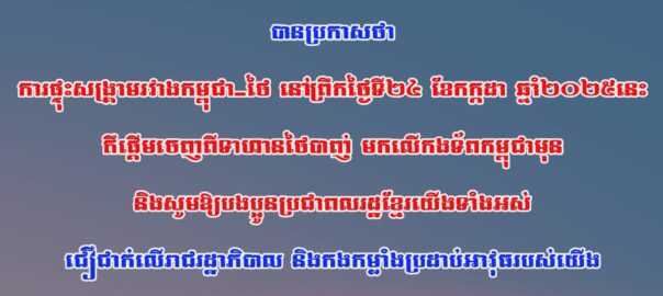 ចេញផ្សាយ ថ្ងៃទី 24 July, 2025